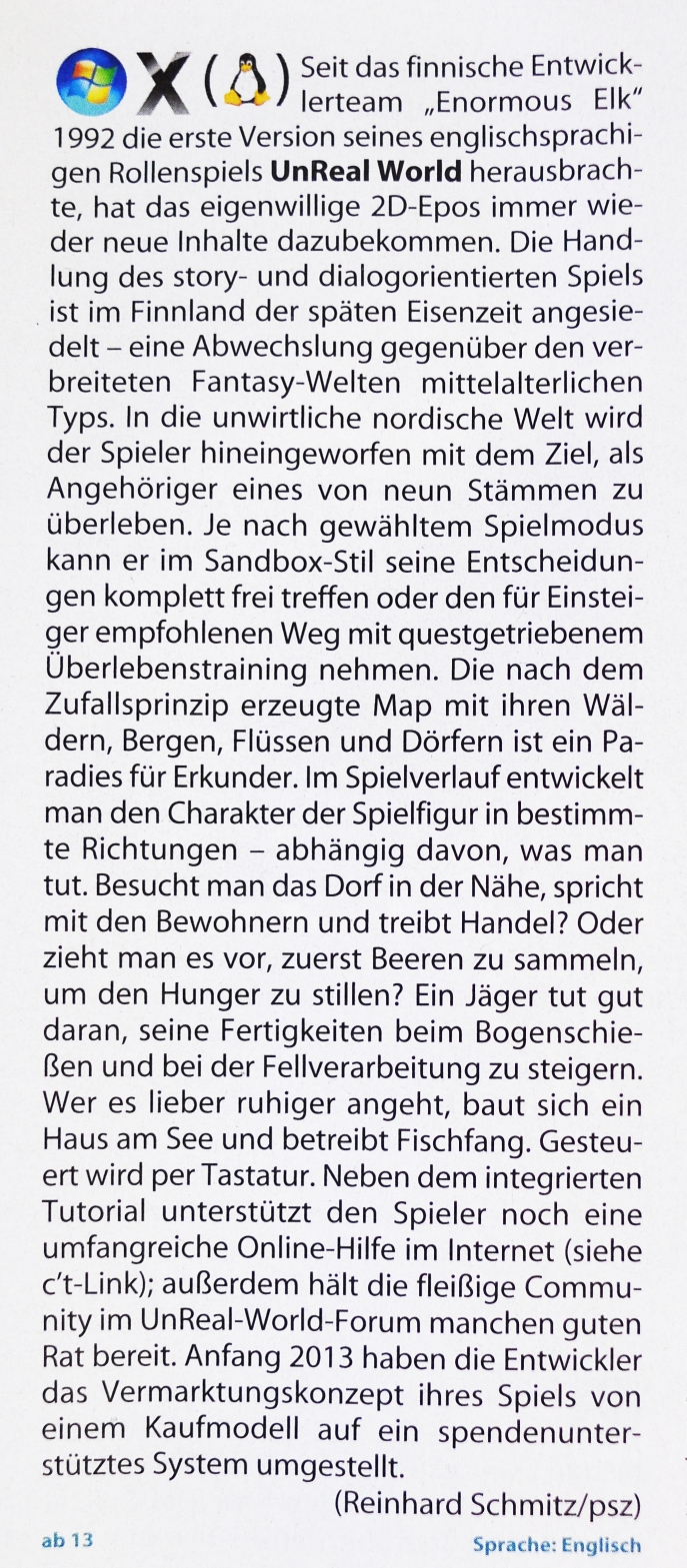 of finnish video game sector (1984-2014). Here's the page about UnReal World in "Sinivalkoinen pelikirja"