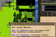 | 02:27, 13 December 2018 | Maiden info example (owl-tribe).png (file) | 157 KB | Petike | A female player character meeting an Owl-Tribe maiden in an Owl-Tribe village during the summer. Example of a description box for an Owl-Tribe maiden. Category:NPC images Category:Owl-Tribe images Category:Interface images | 1 | |