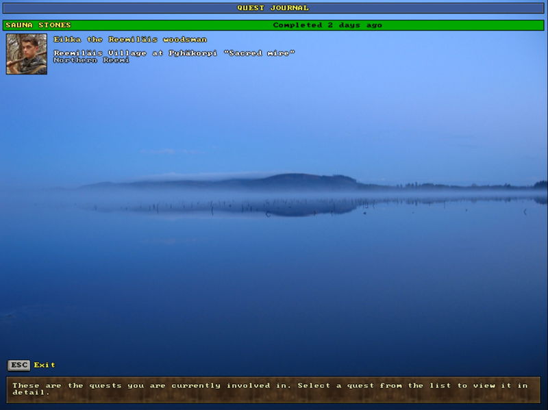 | current | 19:55, 11 October 2020 | 1,440 × 1,078 (241 KB) | Petike (Talk | contribs) | == Description == A screenshot of a completed "gather stones for sauna repairs" quest. Category:Quest images |