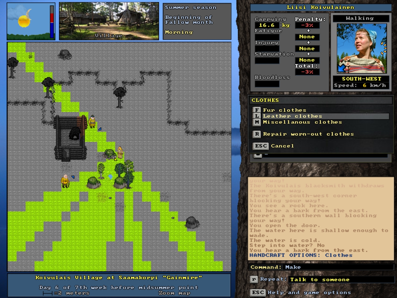 One new thing to expect is a nested menu for making clothes. Upon selecting [C]lothes option from [M]ake you will now enter a sub-menu with three categories; fur clothes, leather clothes and miscellanous clothes. This menu will get updated with woollen and textile clothing somewhere in the future then.