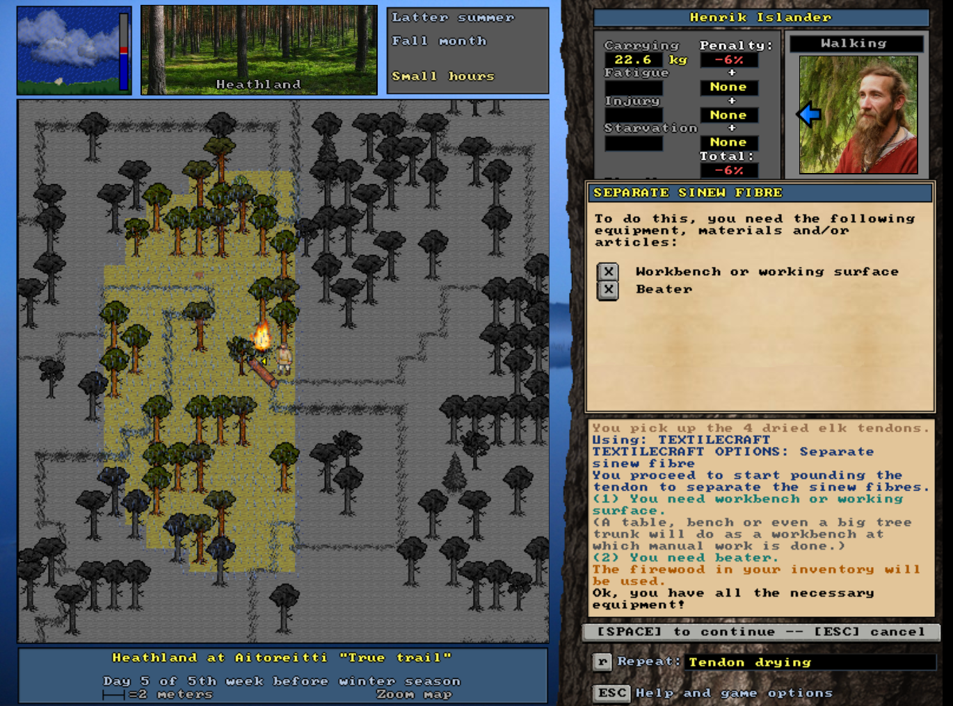And within TEXTILECRAFT menu there's a set of three new options. First of all, the fresh tendons need to be dried in order to process them further.