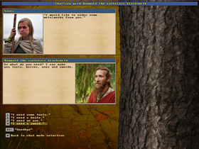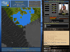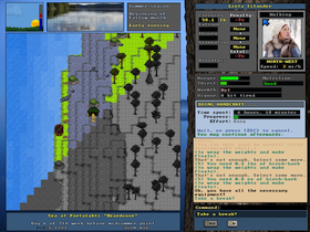 2008Versions 3.04(2) - 3.11R--RRR--RR-Major external and internal chances -- a record-breaking year in number of releases. As new (SDL) era of UrW now allowed system and hardware independent user interface/audiovisual design and lots of effort was put into giving the game a new outlook and facelift. Almost all the menus and game-screens were renewed and made mouse sensitive. Tile-graphics engine was overhauled and majority of the tiles were re-drawn now featuring overlapping. Big crafting improvements were also made featuring more complex usage of raw materials and automatic selection of tools - of which some now were better suited for only certain tasks. A detailed "required items" dialog was also added. Crafting became far more complex, flexible and fun. NPC and animal AI improvements were started and chat-system was overhauled. NPCs now chopped down trees, maintained fire and had became aware of events in the world - also telling their news to the player character.