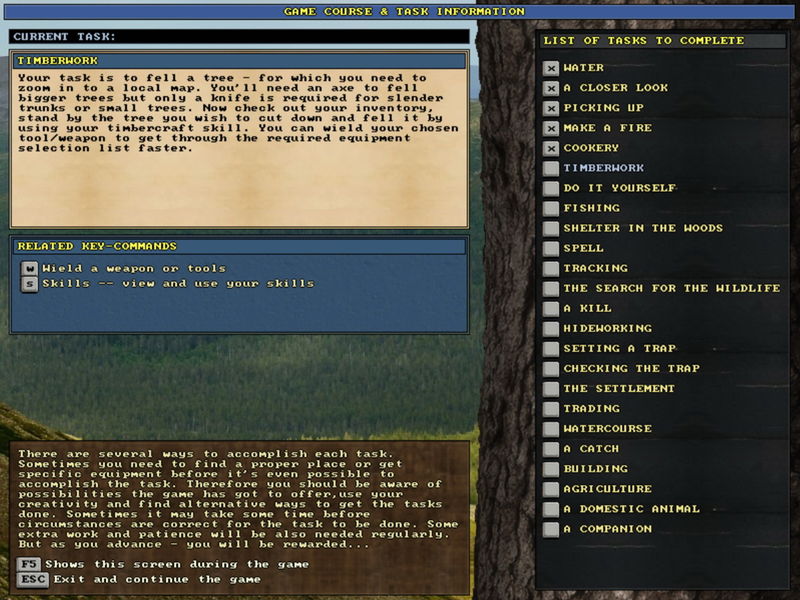 A screenshot of the "Timberwork" objective (goal no. 6) in the Living in the Wild game course.